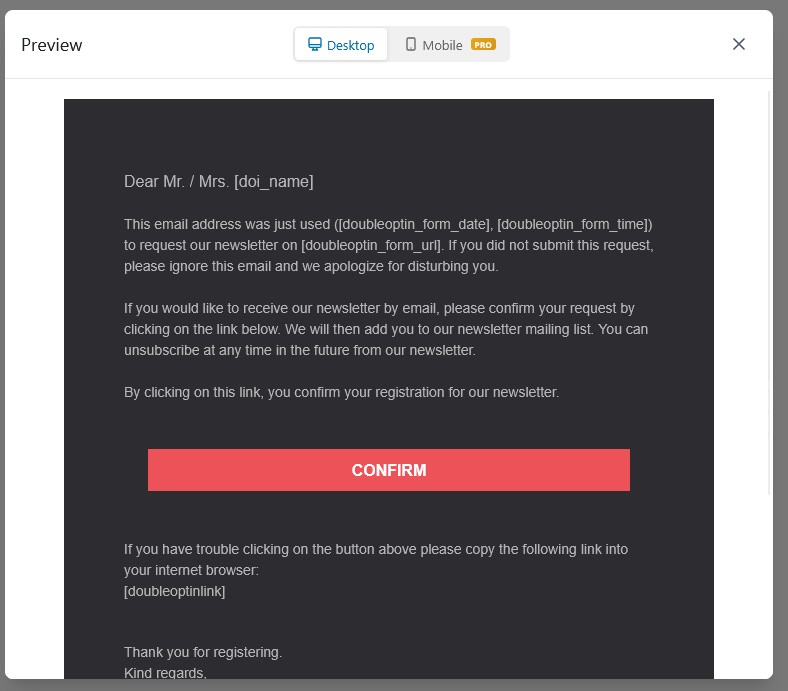 - Predefined templates or fully custom opt-in mails